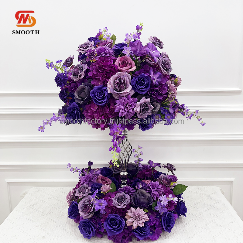 Venta de fábrica suave, nuevo diseño, flor de rosa púrpura Artificial, Bola de flores, centro de mesa para decoración de eventos de fiesta de boda