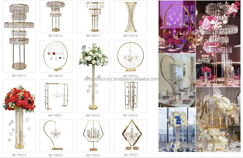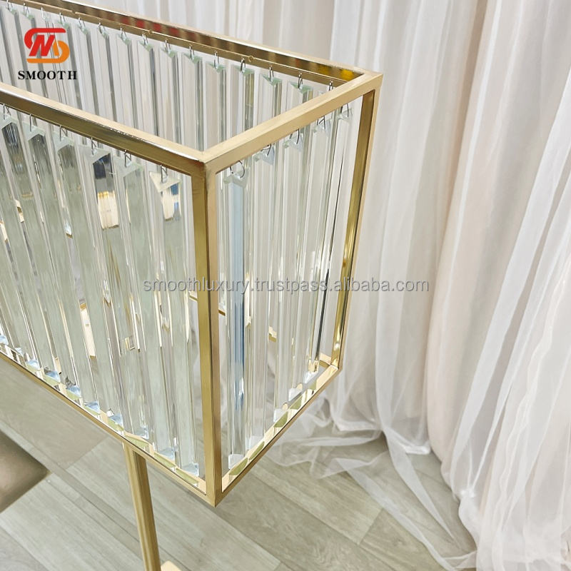 SMOOTH Gold Rectangle Cuboid Wedding Crytal bead Centro DE MESA DE ACERO INOXIDABLE accesorios para eventos de boda