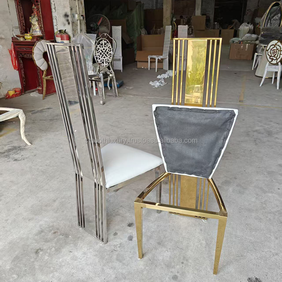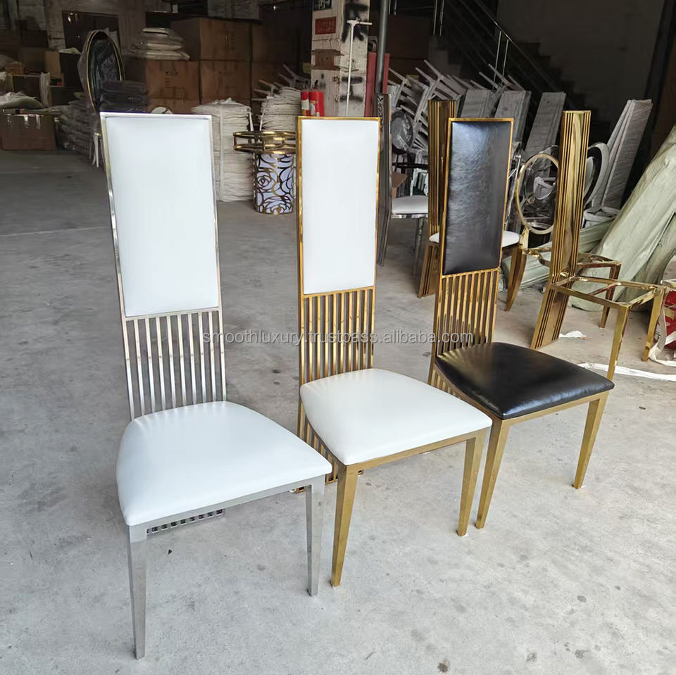 SMOOTH Gold Wedding Silla con respaldo alto Silla de metal para eventos Comedor interior Muebles de fiesta Silla de acero inoxidable Boda