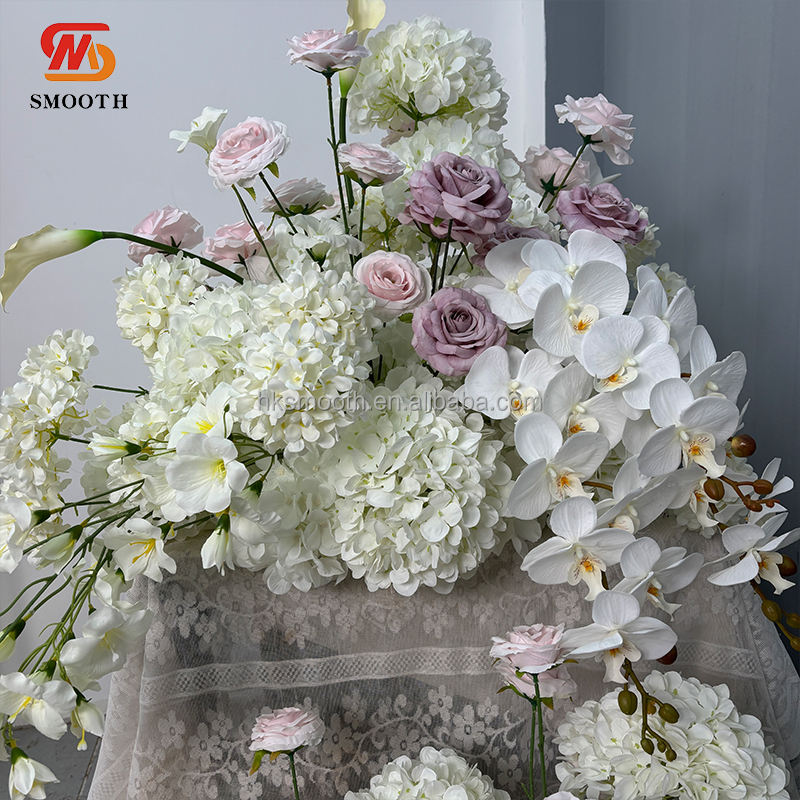 Alfombra de flores para pasillo de boda, diseño esponjoso hecho a mano, color blanco, hortensias, para eventos de boda