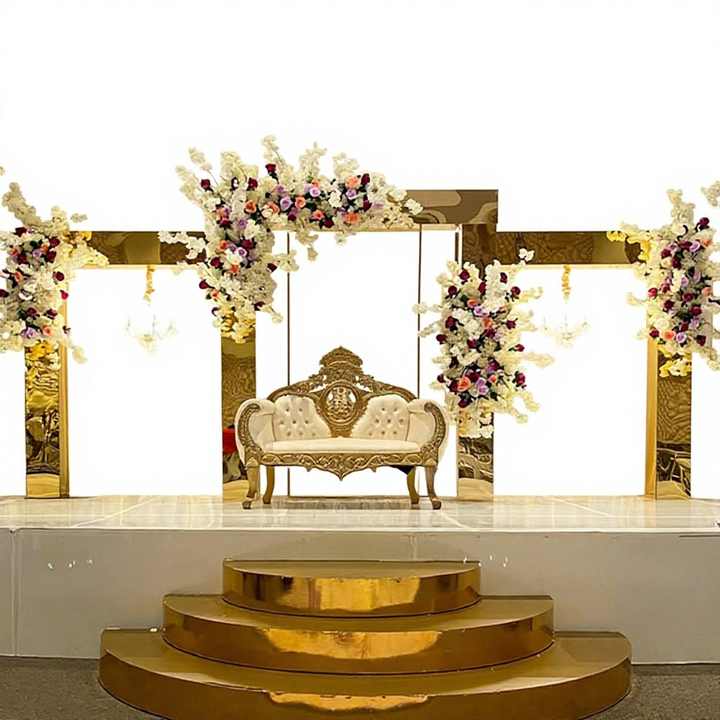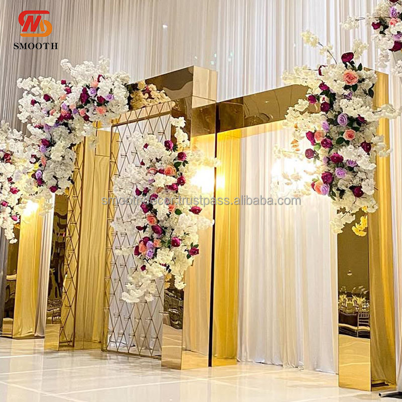 Soporte Rectangular de Acero Inoxidable para Fondo de Boda, Acabado Espejo Dorado Brillante, Alta Calidad