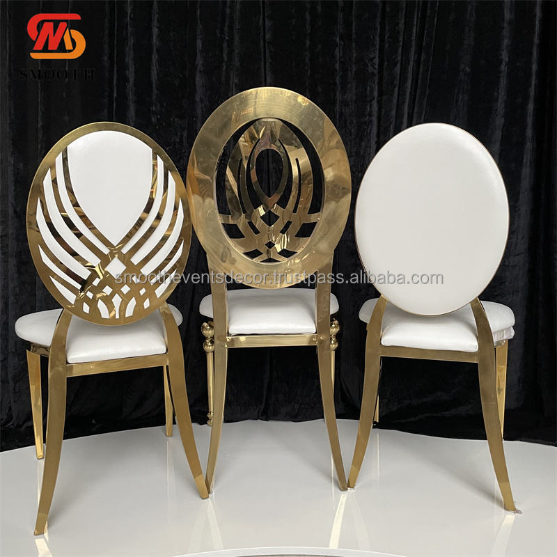 SMOOTH, gran oferta, lujo, moderno, dorado, acero inoxidable, espalda redonda, recepción de bodas, silla de salón de banquetes