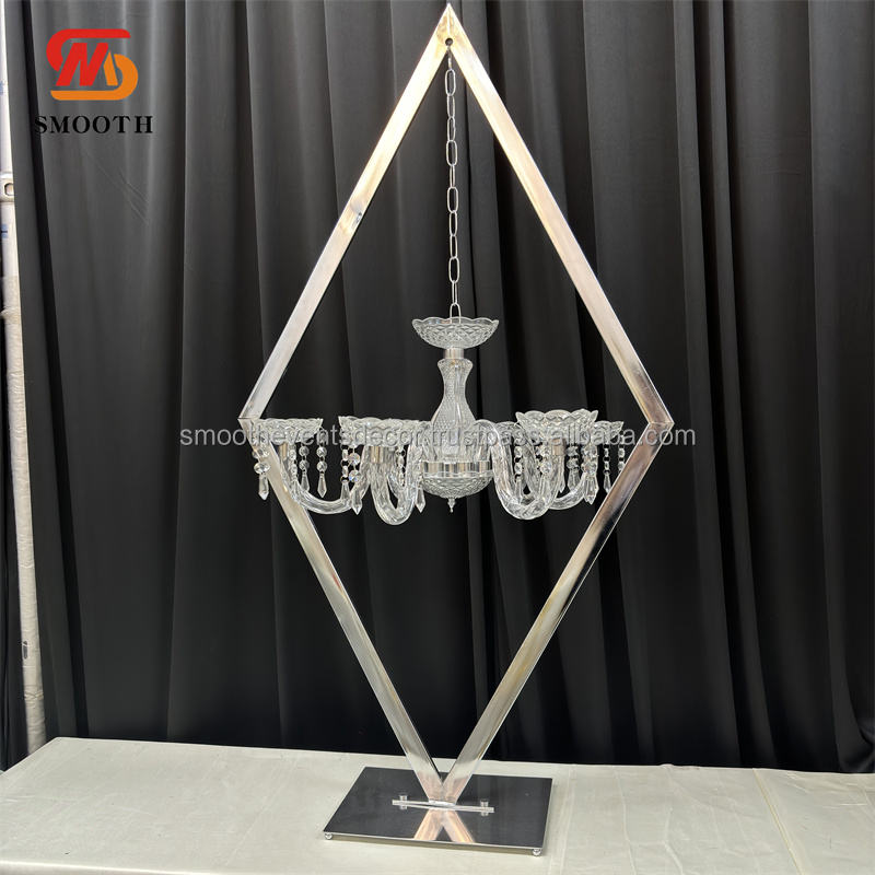 Suave Venta caliente oro y plata alto diamante marco colgante cristal candelabro centro de mesa boda centro de mesa