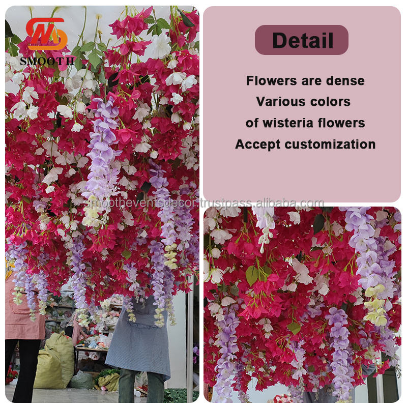 Suave, superventas, techo de restaurante personalizado, colgante, flores de glicina rosa fuerte para decoración de eventos de fiesta de boda