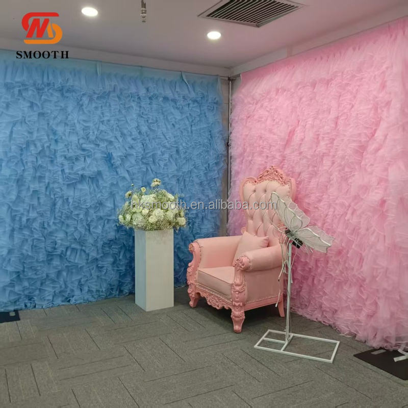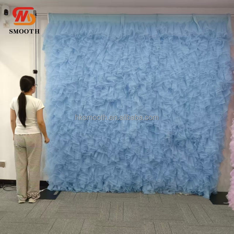 Panel de Fondo de Tul Azul Claro con Volantes, Muro de Flores Romántico de Malla para Decoración de Bodas, Baby Showers y Cabinas de Fotos
