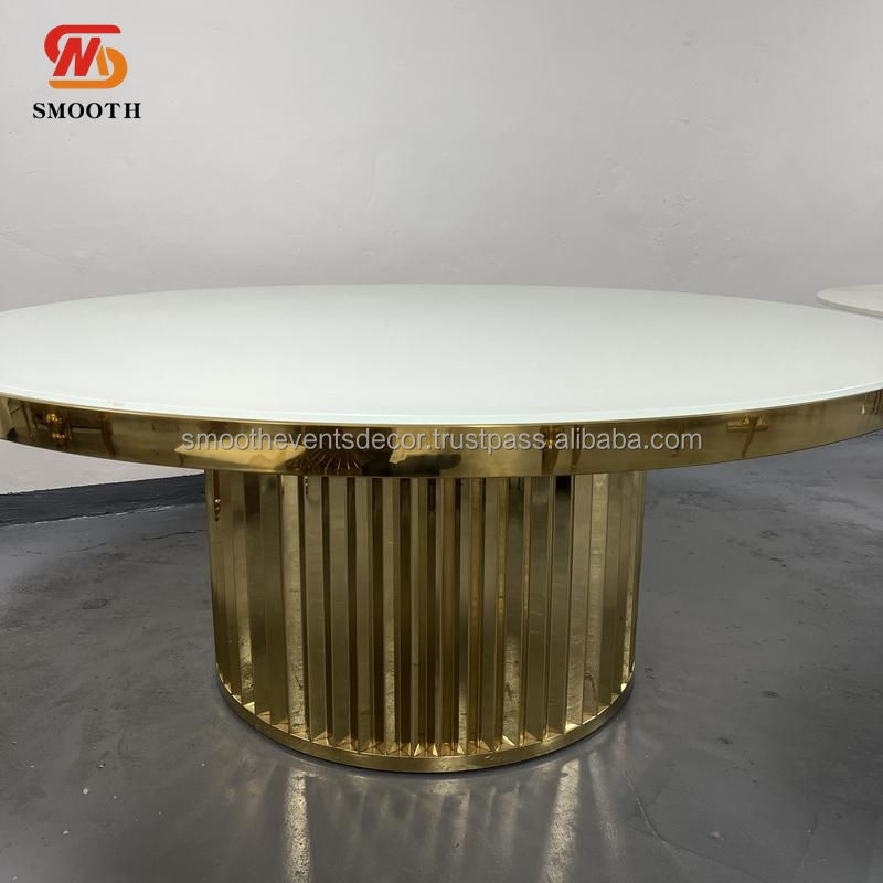 Mesa elegante de textura de mármol con Base dorada de moda de lujo suave para restaurante, evento de fiesta de boda