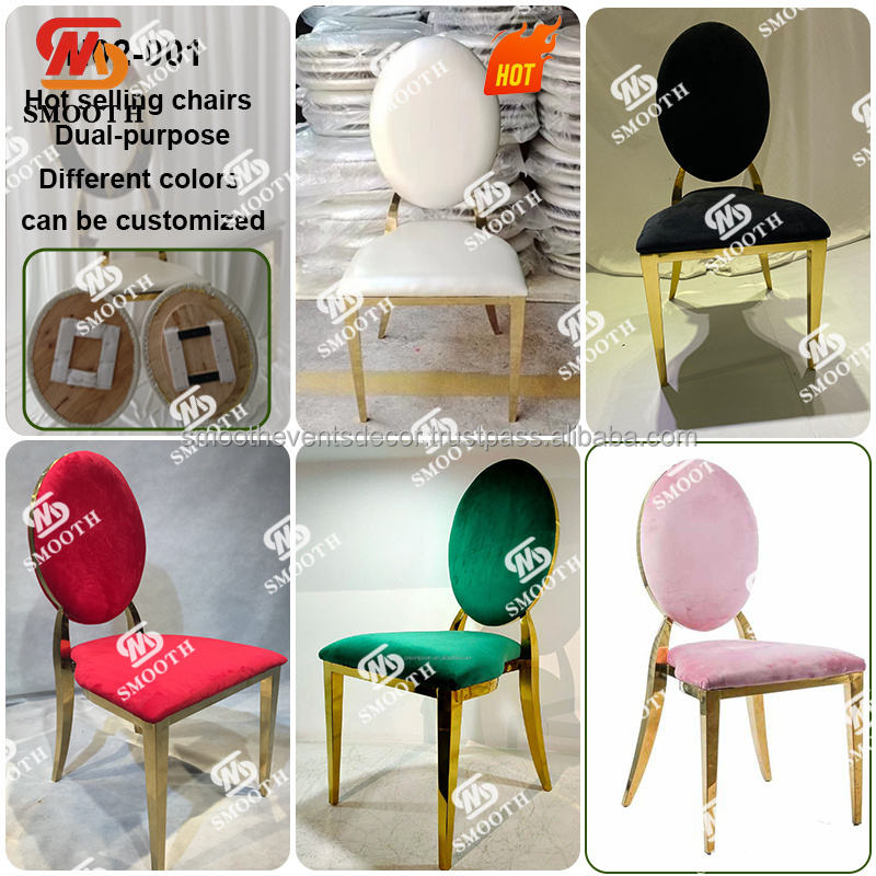 SMOOTH Modern Wedding Hotel Furniture Cojín Rosa Silla dorada Restaurante Apilable Wedding Resin Louis Chair