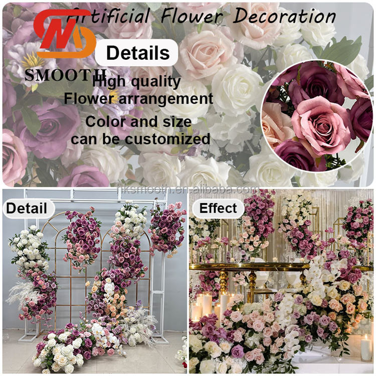 Centro de Mesa Floral con Diseño Nuevo y Elegante, Camino de Mesa de Flores de Seda, Hilera de Flores para Decoración de Eventos