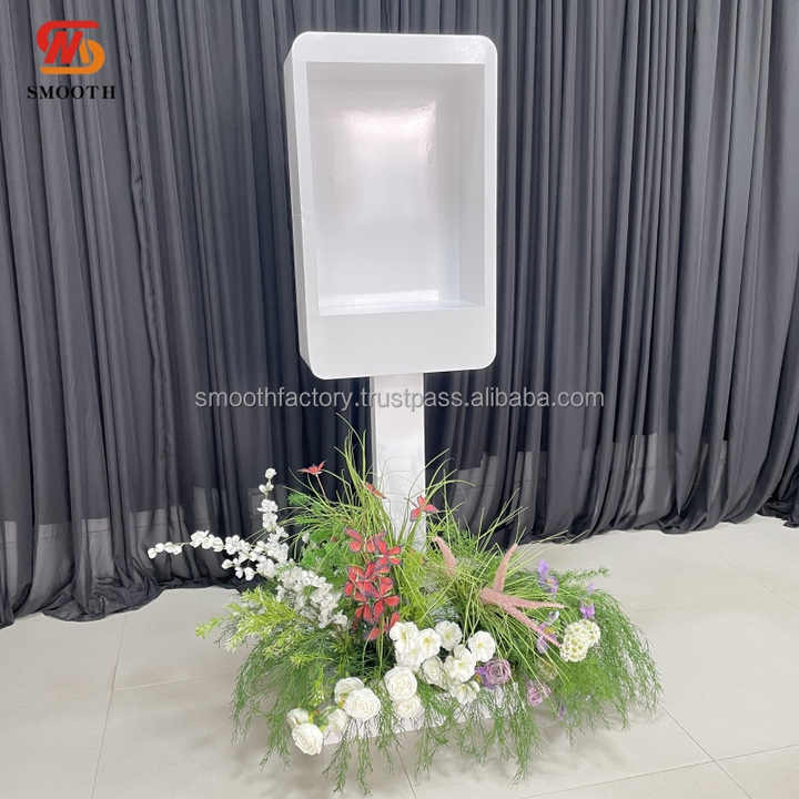 Soporte de cabina telefónica de metal personalizado suave con libro de visitas de audio blanco para decoración de bodas y fiestas