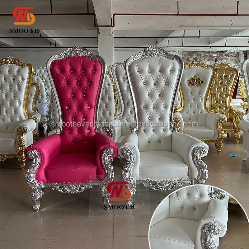 Silla de trono romántico suave, sofá rosa fuerte, sofá antiguo rey y reina para Banquete de boda y fiestas de cumpleaños