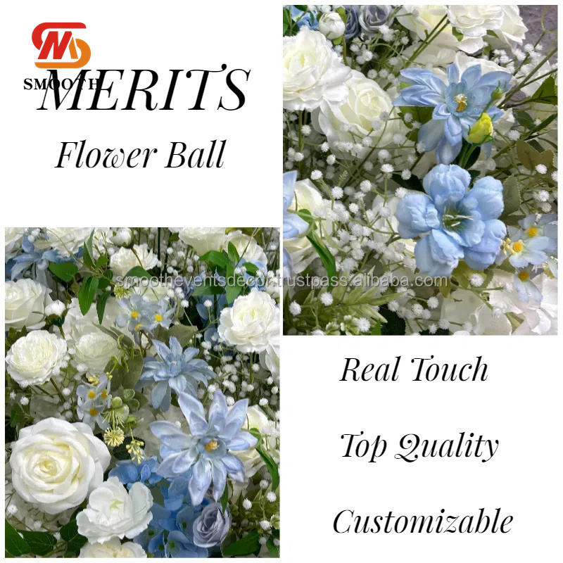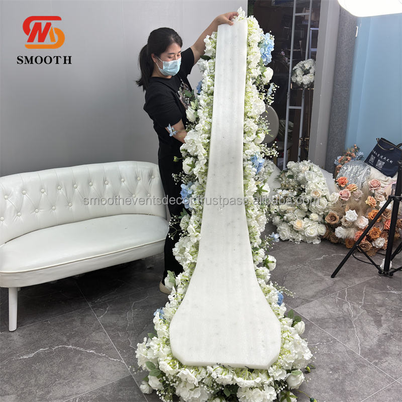 Gran Azul Blanco Artificial Floral CorredorNombre del producto