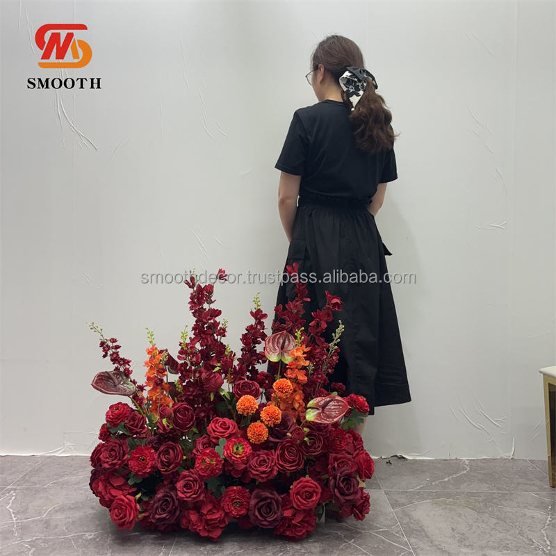 Fondo DE BODA suave arreglo de fila de flores Borgoña rosa roja pasillo corredor de flores para boda
