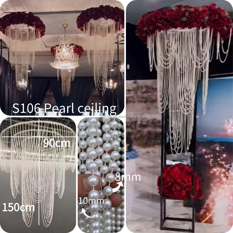 Decoraciones Metálicas para Techos de Bodas SMOOTH, Cortina de Perlas Acrílicas Colgantes