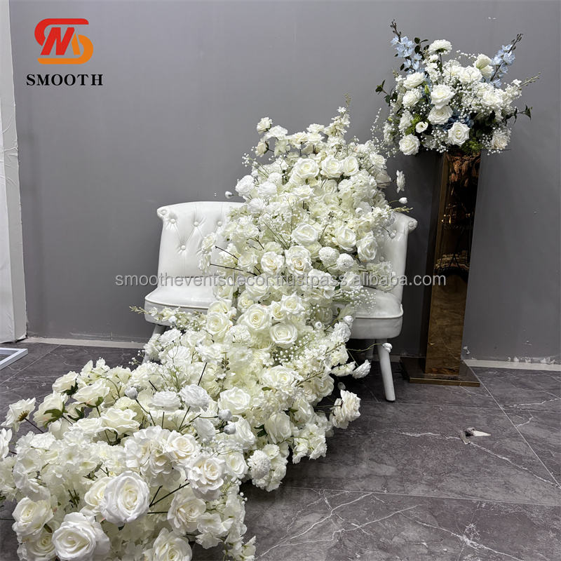 SMOOTH venta al por mayor nuevo modelo Decoración de mesa elegante rosas blancas pasillo flor corredor para fiestas de boda