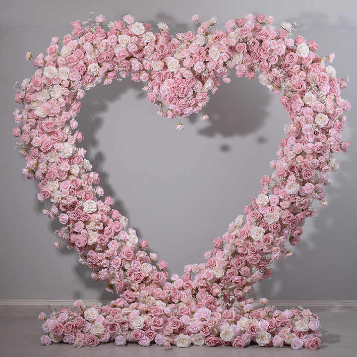 SN-LF050 Precio de Fábrica Arreglos Florales en Forma de Corazón para Bodas, Camino de Mesa de Flores Rosadas, Decoración para Eventos y Fiestas, Arco de Flores de Hortensia y Rosas