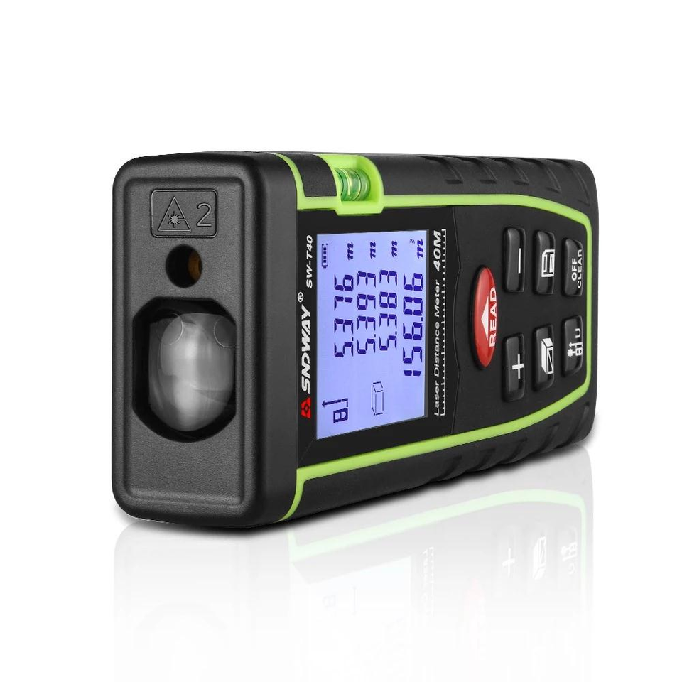 Telémetro Láser Digital Portátil SNDWAY Serie SW-T, Alcance de 40M/60M/80M/100M, Unidades en M/in/ft, 150s Auto