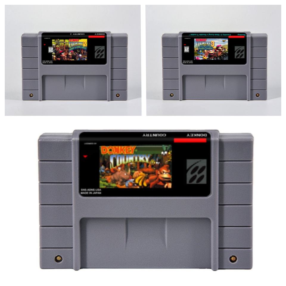 Cartucho Clásico Kong S de 16 Bits, Versión Estadounidense, Juego PRG con Ahorro de Batería para Nintendo S, Accesorio Donkey Kong Country 1 2 3