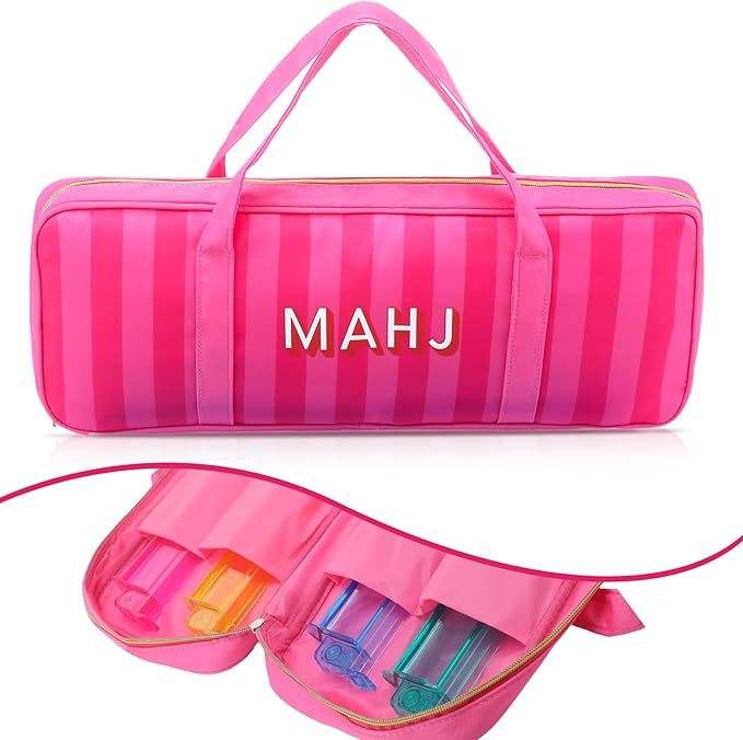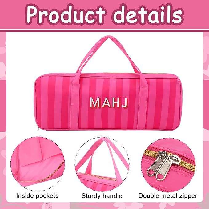 SNJY Bolsa de almacenamiento para mesa de Mahjong con letras a rayas unisex, de lona, de gran capacidad, plegable, multifuncional, portátil, para viaje