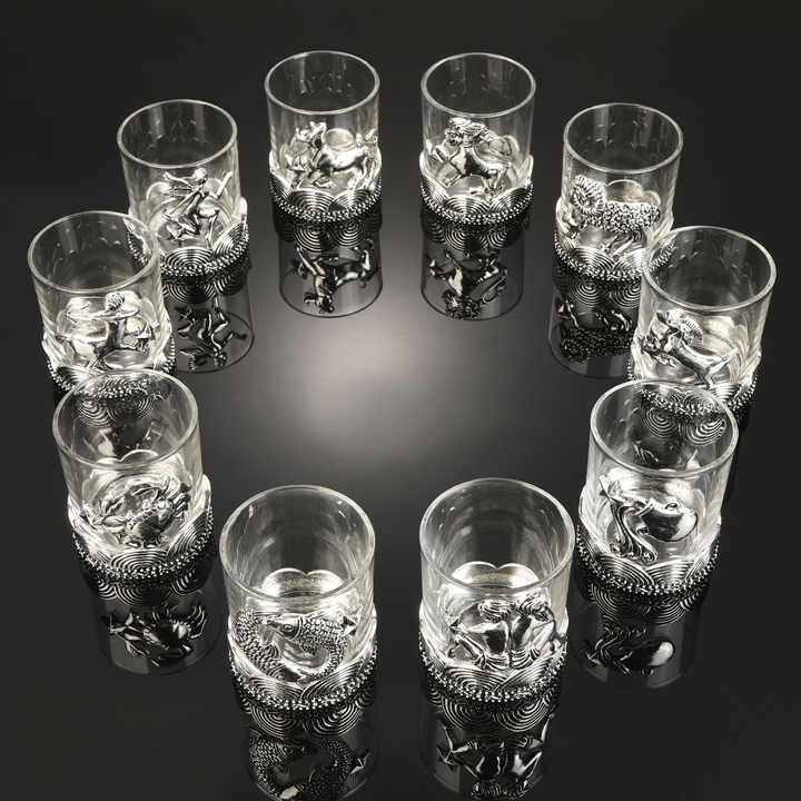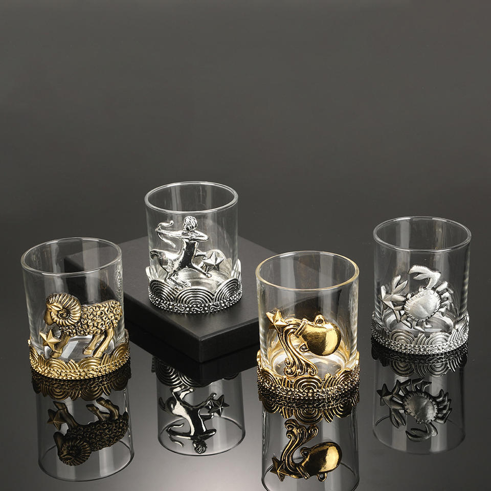 Nombre del producto:SNW Doce estrellas signo de aleación de metal a base de vidrio Whisky Glass Set