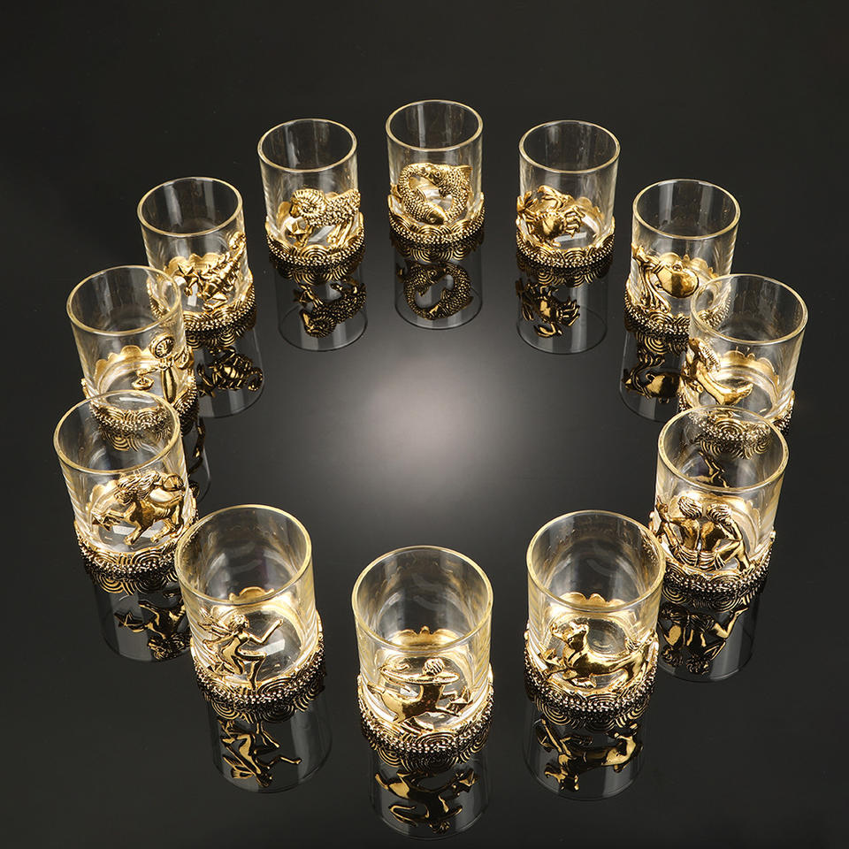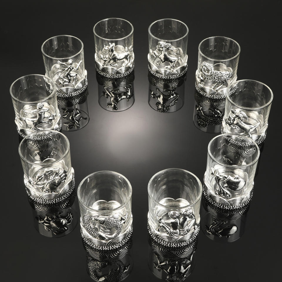 SNW Doce estrellas signo de aleación de metal a base de vidrio Whisky Glass Set
