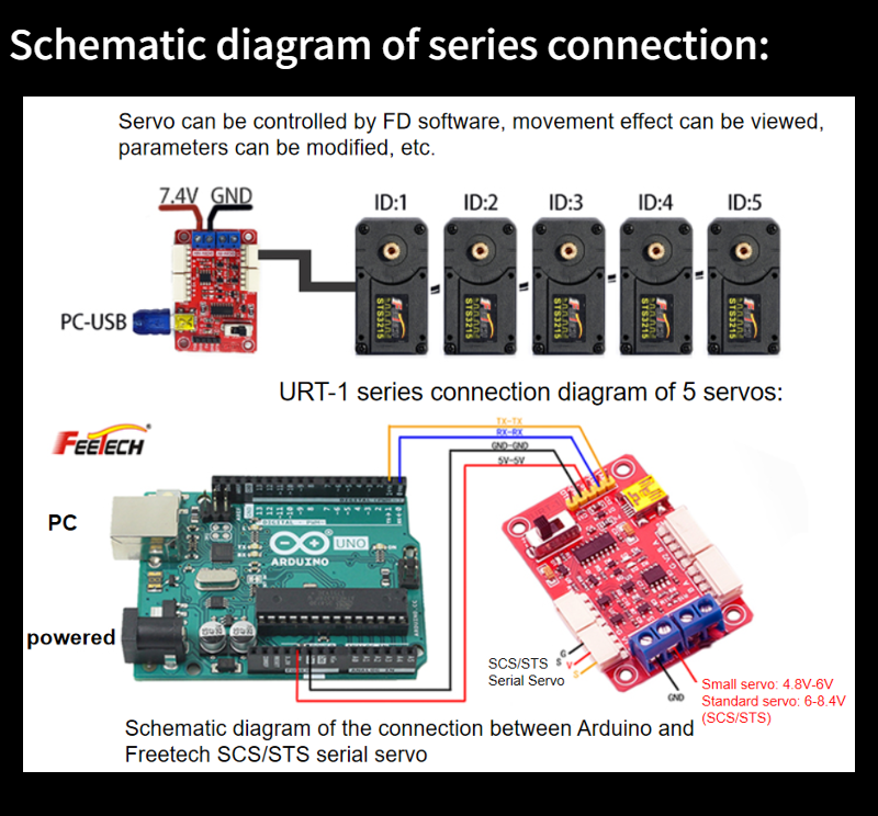 SOARM100 Feetech STS3215 Servo STS de Alto Torque 7.4V 19KG 360 Grados Multiusos con Bus UART para Arduino DIY Humanoide