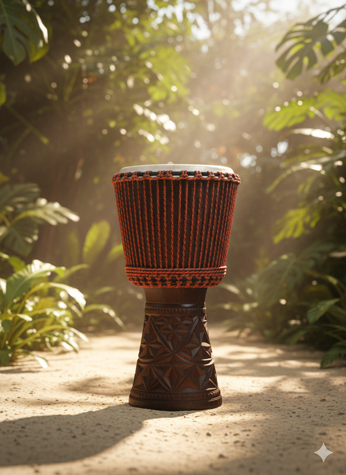 Tambor Djembé Africano SOLOBEAT, Hecho a Mano, 20 cm de Diámetro, Cuerpo de Bronce B20 Tallado a Mano, Cuerda de Afinación Roja y Negra, Profesional
