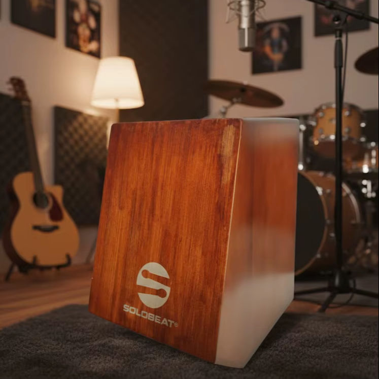 Cajón Clásico Profesional SOLOBEAT, Acabado Natural, Caja de Percusión Hecha a Mano con Madera de Abedul, Cámara Ajustable, Parche de Piel de Oveja