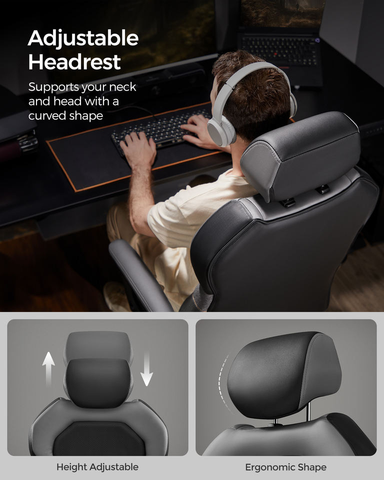 SONGMICS Classic Black Rocker Function Silla de computadora 150kg PU Reposacabezas ajustable Silla de oficina Silla de juegos