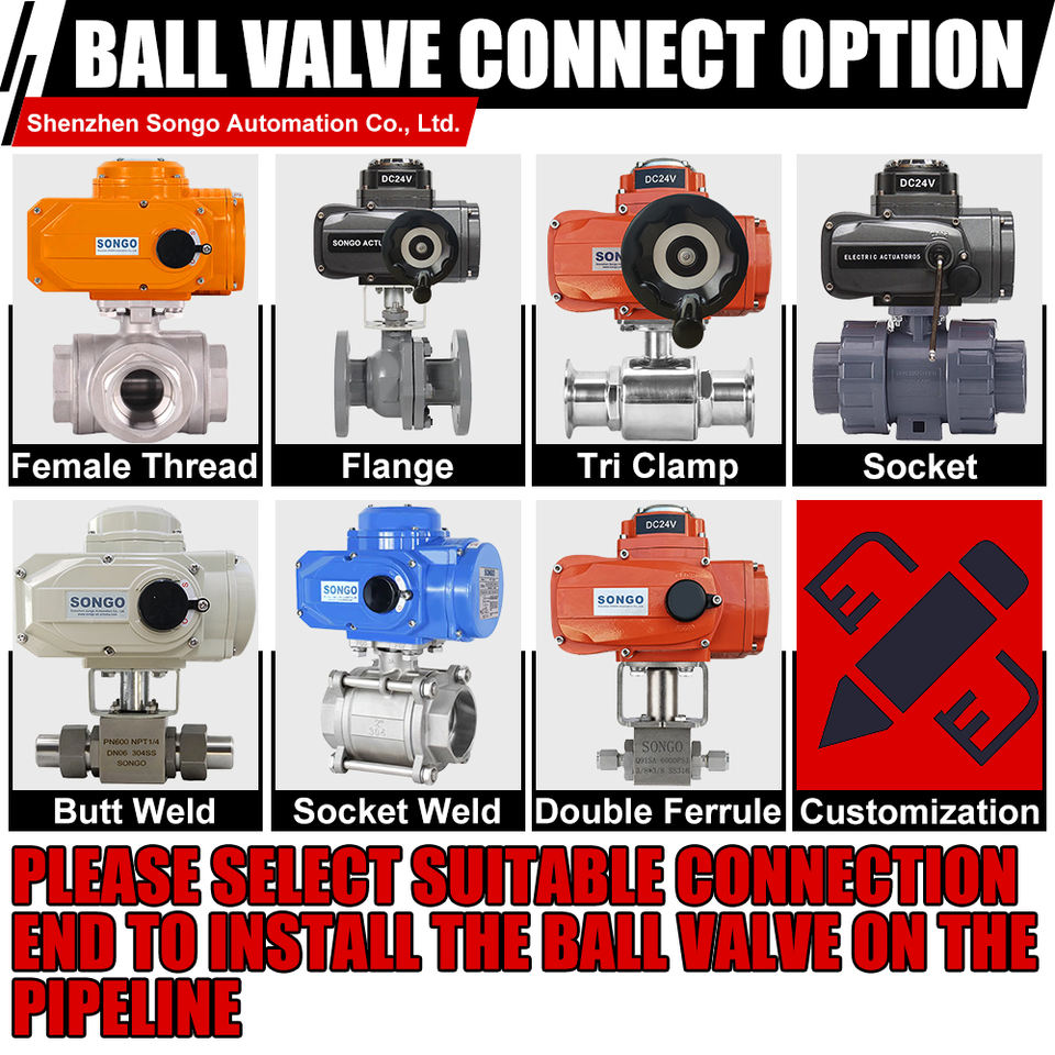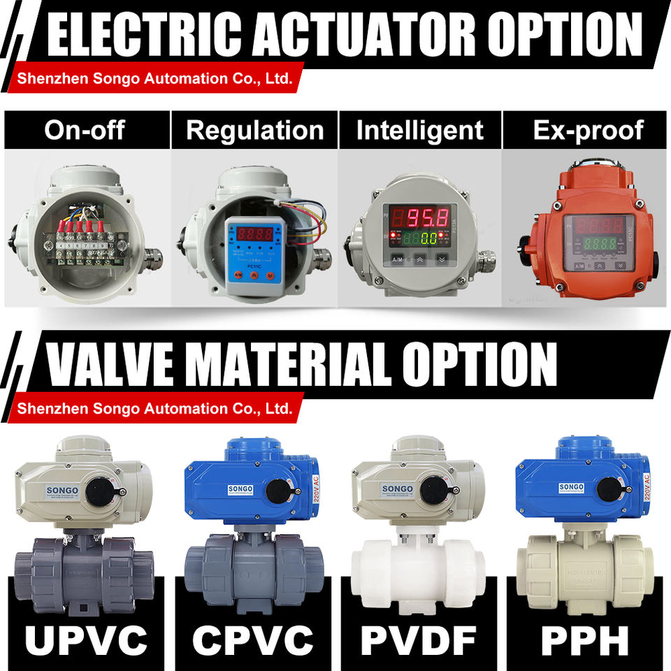 SONGO DN80 3 pulgadas 12V DC impermeable doble unión PVC plástico 2 vías modulación actuador eléctrico válvula de bola motorizada