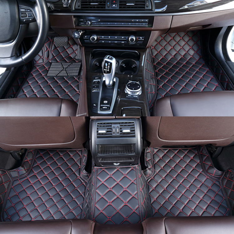 Nombre del producto:Alfombrillas de coche de diamante impermeables Conjunto de alfombras de piso de coche de lujo rojo