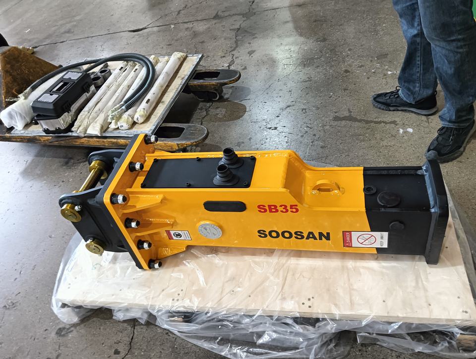 Martillo hidráulico SOOSAN SB35 con caja de herramientas, cinceles, mangueras de cilindro de nitrógeno, garantía de un año, características estándar
