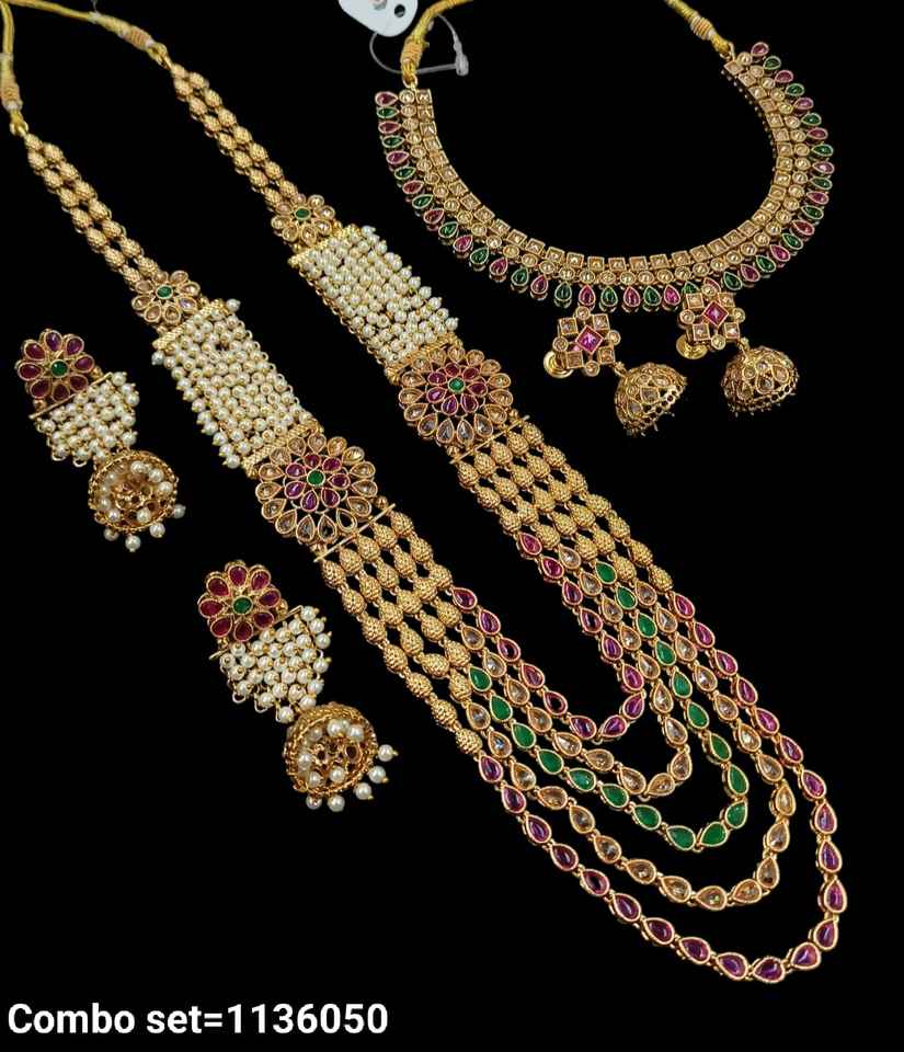GARGANTILLA DEL SUR DE LA INDIA Y CONJUNTO DE COLLAR COMBINADO LARGO CONJUNTO DE JOYERÍA DEL TEMPLO DEL SUR DE LA INDIA DE LA MODA Y CONJUNTO DE COLLAR DEL SUR PARA MUJER