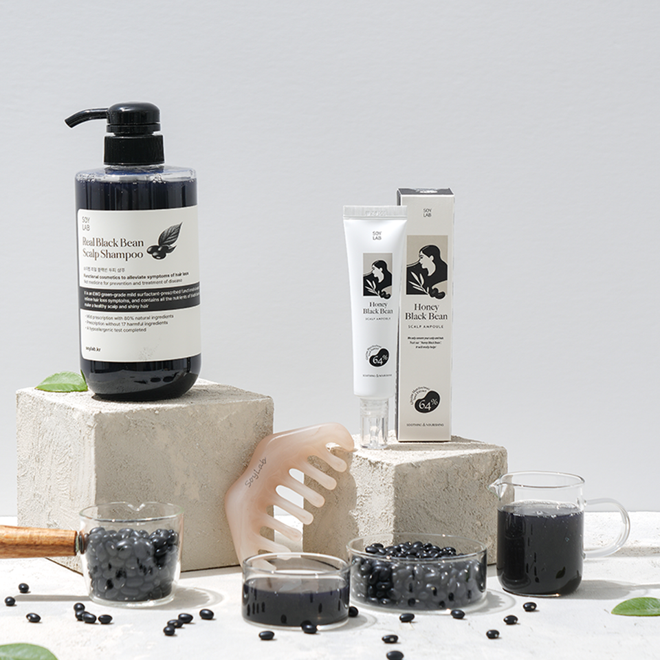 [SOY LAB] Set de Champú para el Cuidado del Cuero Cabelludo con Frijol Negro y Ampolla de Miel con Efecto Suavizante y Control de Grasa para una Pureza y Brillo Saludable del Cuero Cabelludo
