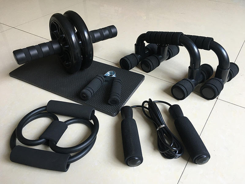 Cuerda de saltar multifuncional 5 en 1 para Fitness, pinza de mano, barra de realce, almohadilla de rodilla, rodillo de rueda Ab