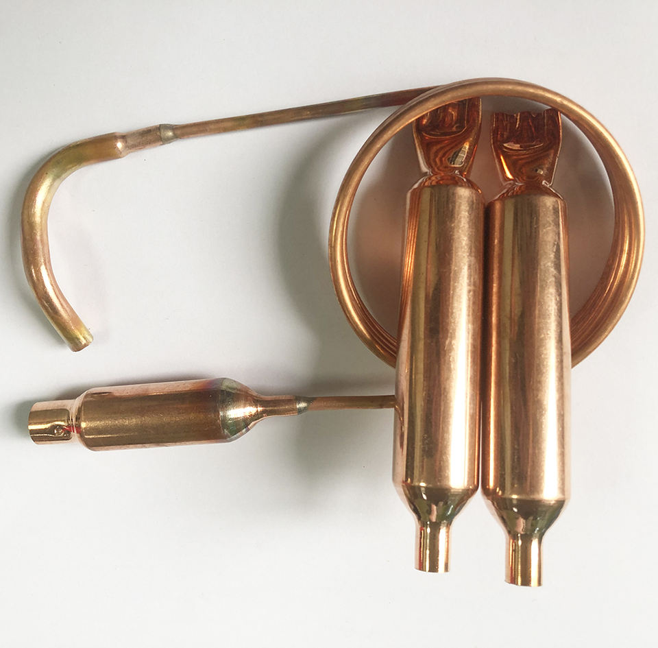 Acumulador de Cobre para Refrigeración SP, Entrada 1/4, Salida de Tres Orificios 1/8, Filtro, Modelo SP1/4*3, Conexión por Soldadura