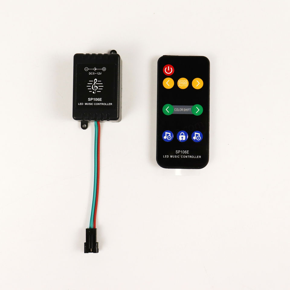 Controlador de Tira LED Activado por Sonido SP106E, Sincronización Inalámbrica de Música para Efectos RGB Direccionables WS2812B/2811