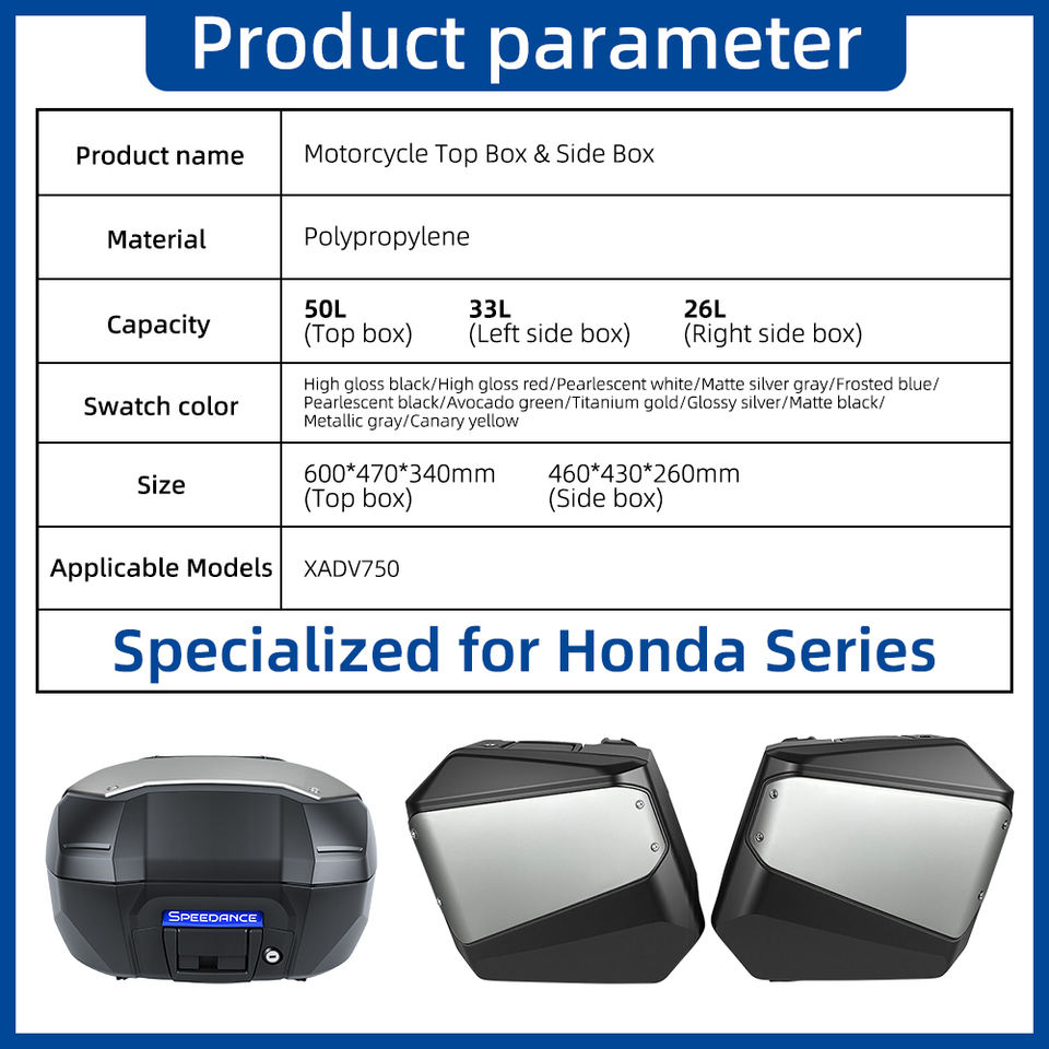 Juego de Tres Maletas Impermeables de PP de Fábrica SPD, Caja Superior de 50L, Caja Lateral de 33L y 26L, para Modificación/Actualización de Motocicletas, Compatible con Honda XADV750