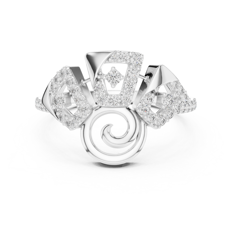 Anillo de Diamantes Cultivados en Laboratorio con Diseño Floral en Espiral, Oro Blanco de 18 Quilates con Baño de Rodio, Minimalista, Certificado, para Compromiso, Boda, Uso Diario