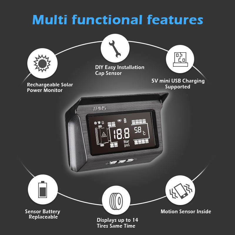SPY Wireless Solar TPMS para camiones Sistema de control de presión de neumáticos 12 sensores Compatible Stralis Atego TGS TGX Magnum Axor
