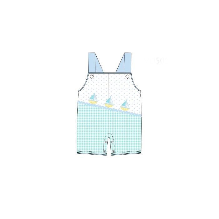 SR3753 CUSTOM Mameluco de Bebé Niña, Diseño a Cuadros Azul, Estilo Marinero, Mono sin Mangas, Venta al por Mayor