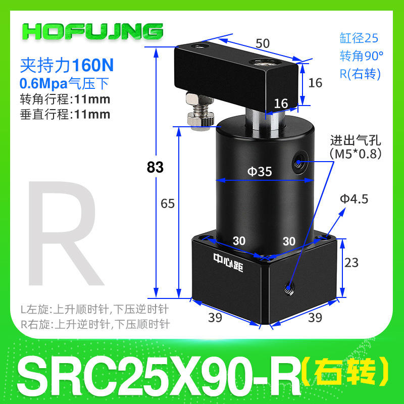 Cilindro de Esquina SRC/ACK 25-90/SCL32/40/50/63, Prensa Neumática de Sujeción Rotatoria de 90 Grados, Filtro de Aire para Uso en Maquinaria
