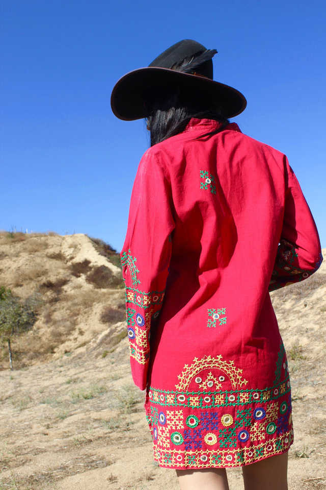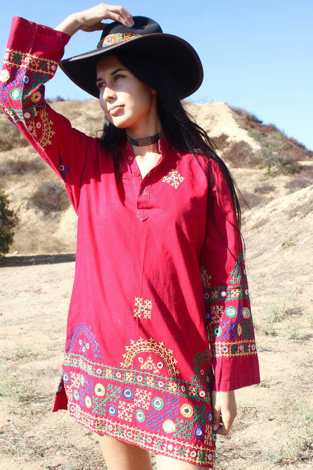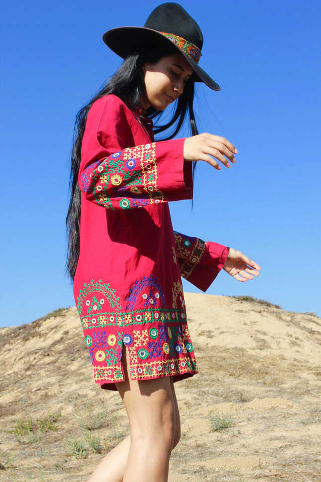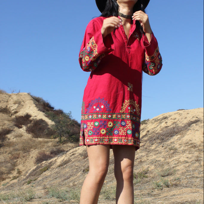 Vestido Túnica con Bordado a Mano de SRJ EXPORTS, Diseño en Línea A, Bordado en Punto de Cruz, Detalle de Espejo, 100% Algodón, Ideal para Tallas Pequeñas/Medianas