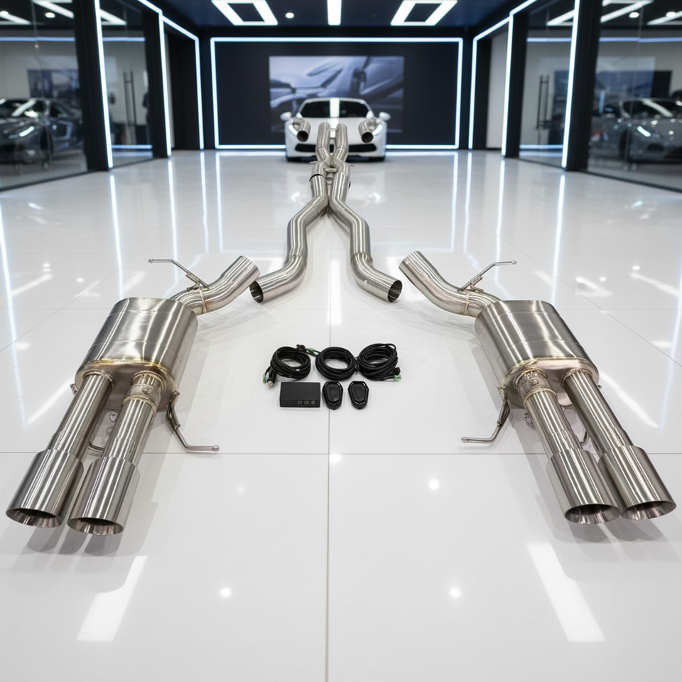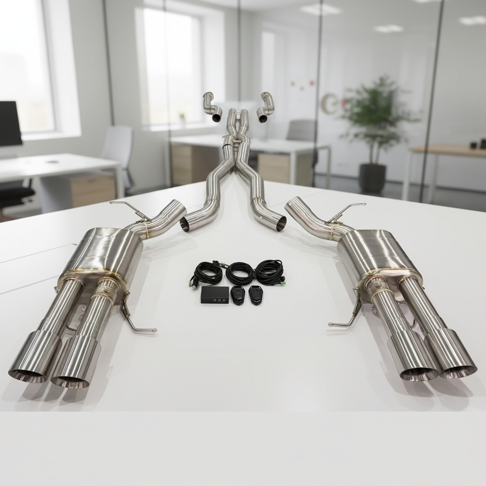 Escape Trasero Personalizado OEM SS304 para BMW M5 E60 5.0 2003-- Silenciador Electrónico con Resonador y Tubos en X Simples/Doble
