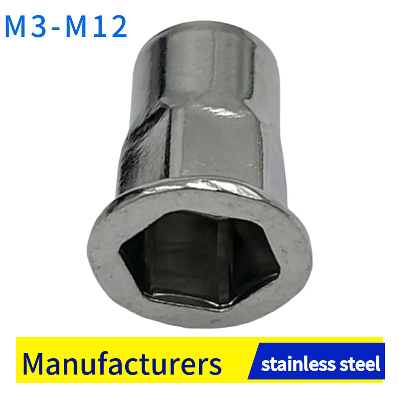 artículo:Tuerca de remache hexagonal tubular roscada de cabeza plana, tuerca de remache moleteada