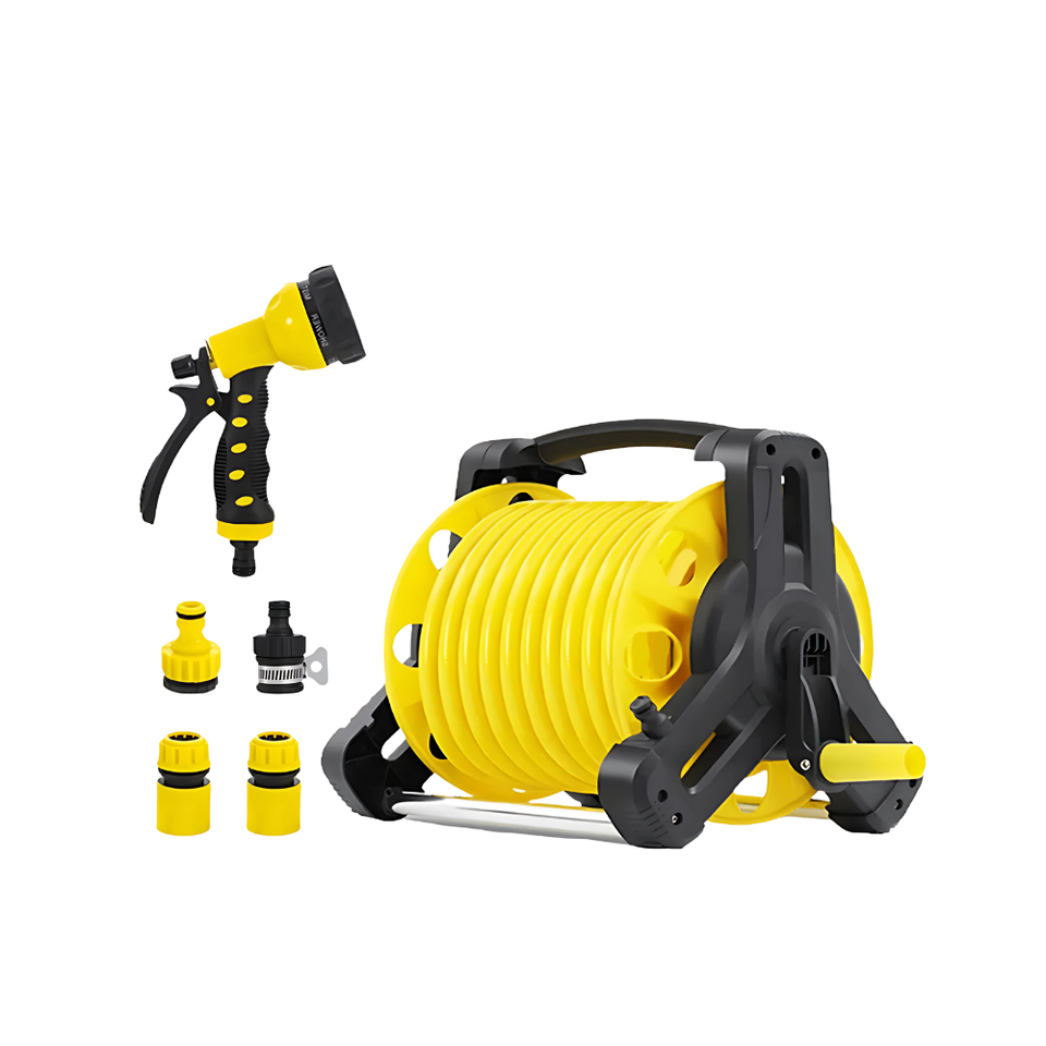 Carrete de manguera de jardín SSBO de PVC/TPR Flexible de 14 metros con rociador de chorro ajustable de alta presión, montaje en pared e riego por goteo