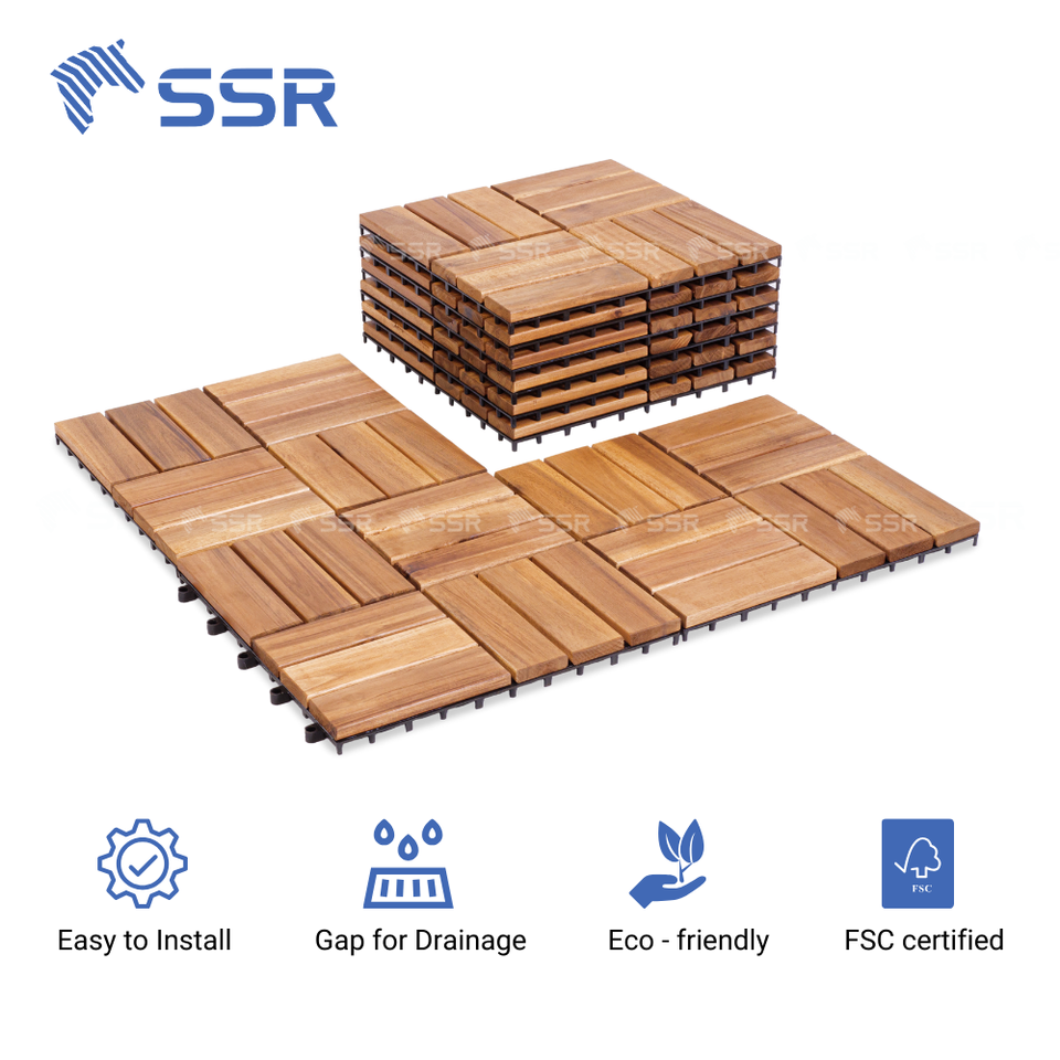 Azulejos de cubierta de madera de acacia, azulejos de patio para exteriores con azulejos de cubierta entrelazados, productor vietnamita, 12 listones, color al óleo de teca