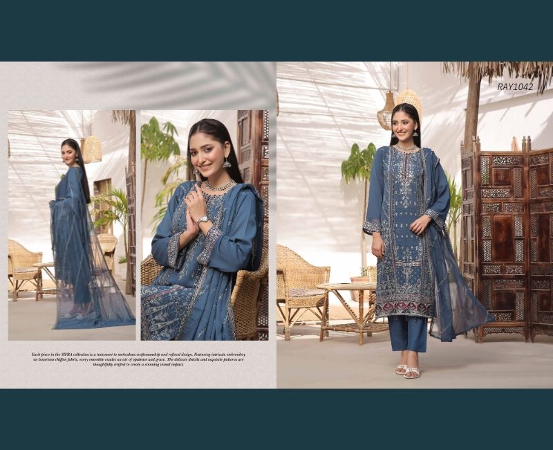SSUMAIRA presenta RANA ARTS BIN HAMEED Colección de gasa bordada SIFRA Vestidos Salwar Kameez cosidos exclusivos y elegantes
