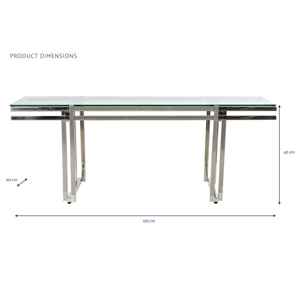MESA DE CAFÉ DE ACERO INOXIDABLE con VIDRIO 120x60x45 PLATEADO