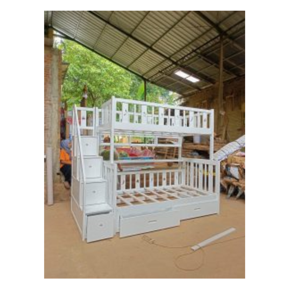 Litera completa con escaleras y dos cajones de almacenamiento para niños