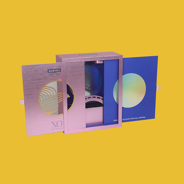 Caja de Regalo para Alcohol en Botella Pequeña, con Frente Transparente, Decoración en Papel y Corte Láser, Caja de Regalo de Lujo XO para Brandy, Desarrollada por STPP